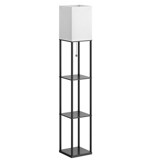 Floor Lamp with Shelves for Living Room, Shelf Floor Lamp with 3 CCT LED Bulb, Corner Display Standing Column Lamp Etagere Organizer Tower Nightstand with White Linen Shade for Bedroom, Office