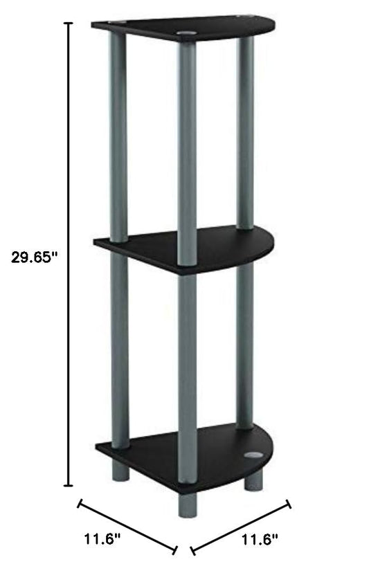 Furinno Turn-N-Tube 3-Tier Corner Display Rack Multipurpose Shelving Unit, Black/Grey (12077BK/GY)