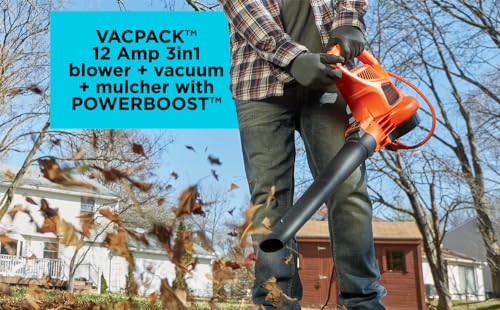 BLACK+DECKER Electric Leaf Blower, Leaf Vacuum and Mulcher 3 in 1, 250 mph Airflow, 400 cfm Delivery Power, Reusable Bag Included, Corded (BEBL7000)