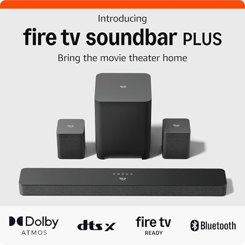Amazon Fire TV Soundbar Plus with subwoofer and surround sound speakers (newest model), 5.1 channel, Dolby Atmos, clear dialogue