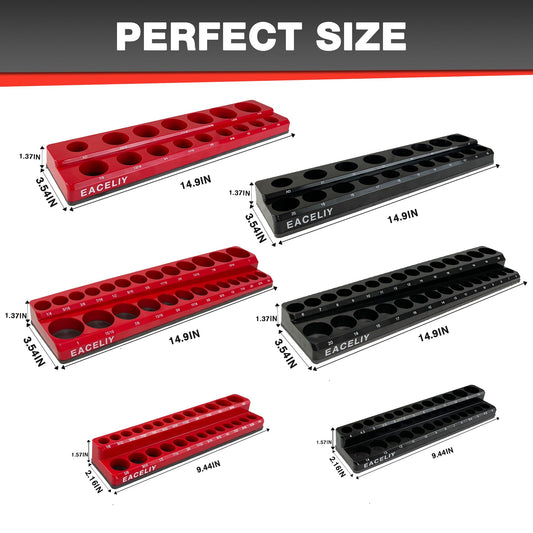 EACELIY 6Pcs Magnetic Socket Organizer Set, 1/2", 1/4" and 3/8" SAE & Metric Deep & Shallow Socket Holder Kit, Socket Trays,holds 143pcs Sockets (sockets not included)
