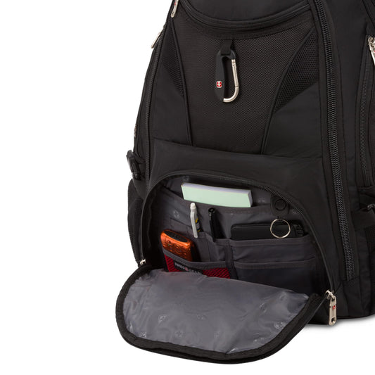 SwissGear 1900 ScanSmart 17” Laptop Backpack Black – Reflective Tech Backpack with ScanSmart Compartment – Multiple Organizer Pockets & RFID Scan Blocking Technology