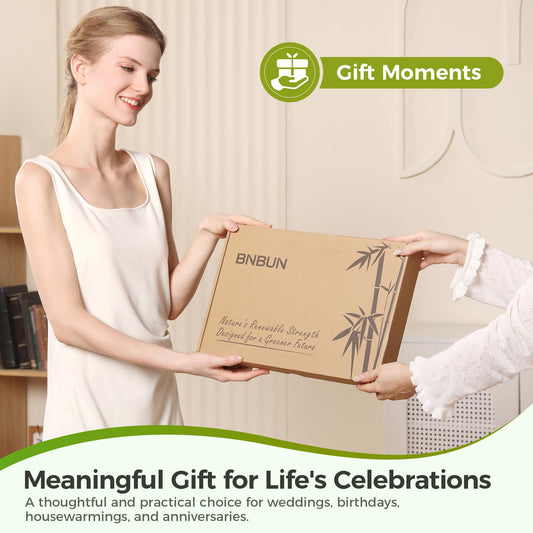 BNBUN Bamboo Cutting Board for Kitchen, Wooden Cutting Board 3-Piece Set with Non-Slip Mat Deep Juice Groove and Built-In Handles, Wood Cutting Board for Meat Vegetables Fruit Ideal Gift for the Home