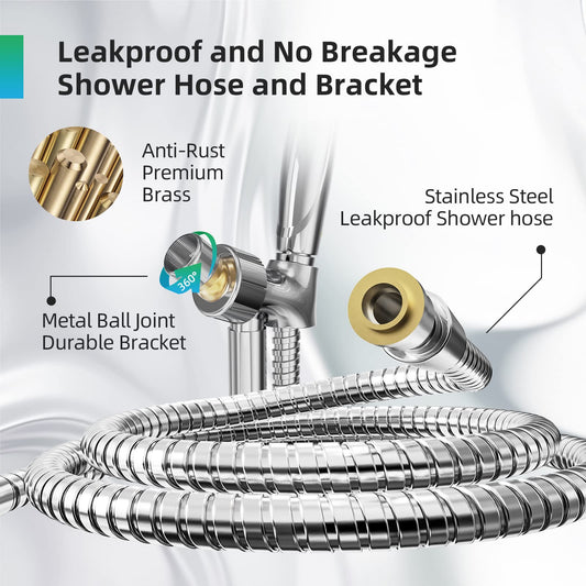 BESAQUO Shower Head,10 Functions High Pressure shower head with handheld, Built-in Pause Mode & 2 Power Wash, Non-Clogging Nozzles High Flow Hand Held Shower Head, Leakproof 6.5ft Hose&Metal Bracket