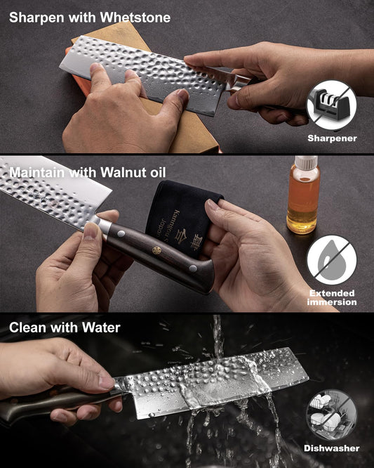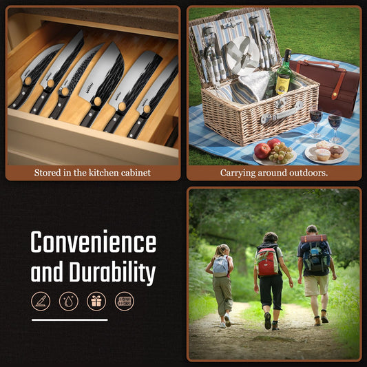 Huusk Knives Set, Serbian Chef Knife Set with Bag, Japanese Kitchen Knives Set, Hand Forged High Carbon Steel Knife Set, Full Tang Knives with Ebony Handle, Butcher Knife Set for Dad, Gif for Men