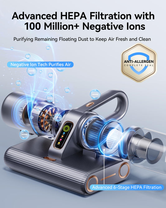 PureMatt Pro 35Kpa Max Suction AI Mattress Vacuum [100% Allergen, Dust & Pet Hair Removal] Bed Vacuum Cleaner with UV Lights, Ultrasonic, HEPA Filter & Sensor, for Bed, Sofa, Carpet, Corded, Gray