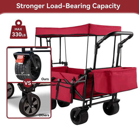 Collapsible Garden Wagon Cart with Removable Canopy, VECUKTY Foldable Wagon Utility Carts with Wheels and Rear Storage, Wagon Cart for Garden Camping Grocery Shopping Cart, Red