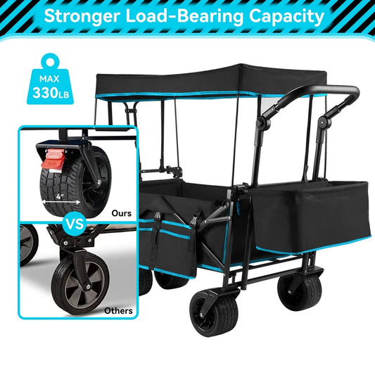 VECUKTY Collapsible Garden Wagon Cart with Removable Canopy Black