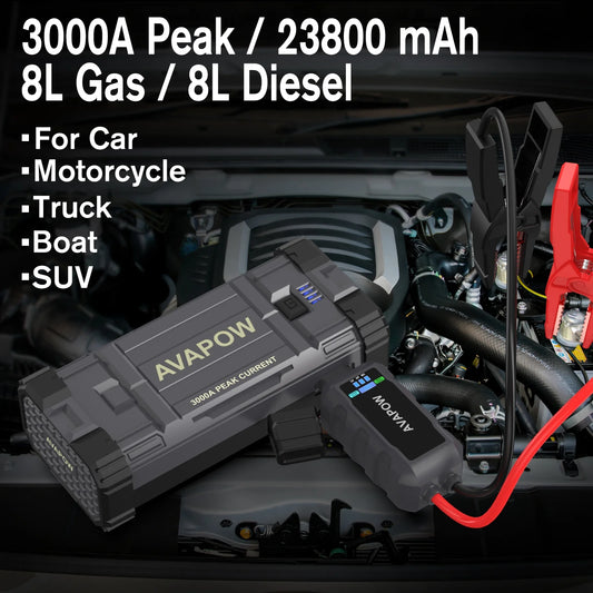 AVAPOW Car Battery Jump Starter ,3000A Peak Jump Starter Battery Pack with Force Start Function, 12V Lithium Jump Charger Pack Box for Up to 8L Gas 8L Diesel Engine