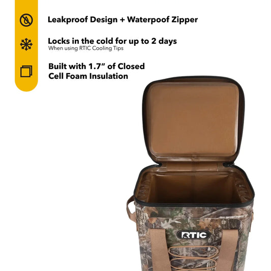RTIC 24 Can Backpack Cooler with Waterproof Zipper, Kanati Camo