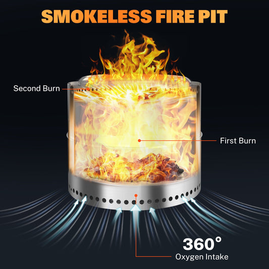 19 Inch Smokeless Fire Pit, 304 Stainless Steel Fire Pit with Carry Bag, Portable Smokeless Fire Pit with Removable Ash Pan, Wood Burning Fire Pits for Camping Backyard Patio Garden Picnic