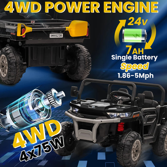Joyracer 24V Ride on Toys, 2 Seater 6-Wheel UTV Car, 4WD Ride on Dump Truck for Big Kids with Trailer Remote Control, Black