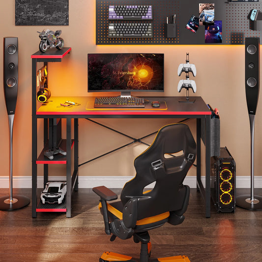 Bestier Computer Gaming PC Desk 44 inch Gamer Table with LED Lights, Reversible 4 Tier Storage Shelves Carbon Fiber