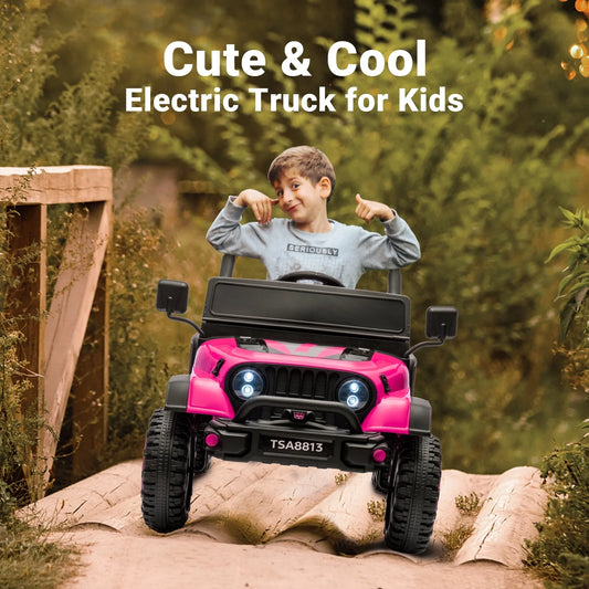 Track 7 24V Ride on Truck, Electric Car for Boys Girls, Ride on Car with Remote Control, Music, Bluetooth, Lights, Spring Suspension, Max Speed 5 mph, Pink
