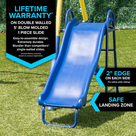 Sportspower Super Saucer Metal Swing Set with 2 Swings, Saucer Swing and a 1pc Heavy Duty Slide