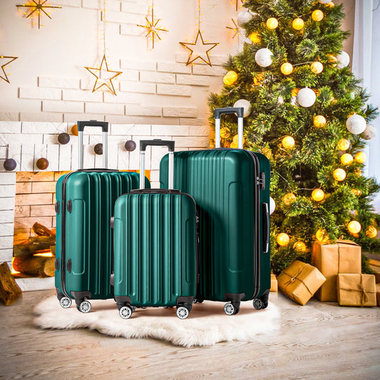 Zimtown 3 Piece Nested Spinner Suitcase Luggage Set With TSA Lock Dark Green