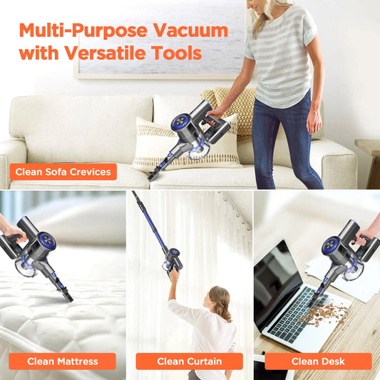 Bossdan Cordless Vacuum, Lightweight Stick Vacuum Cleaner for Hardwood Floor, Quiet, Blue, New