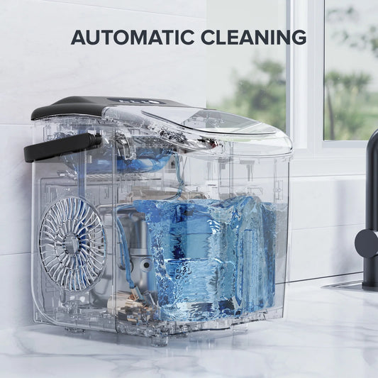 KISSAIR Countertop Ice Maker, Portable Ice Machine with Self-Cleaning, 26Lbs/24H, 9 Ice Cubes Ready in 6 Mins, for Home/Kitchen/Bar, Black