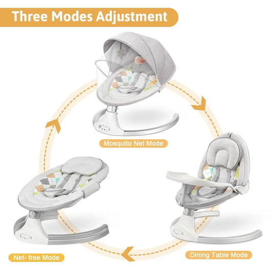 Baby Swing Chair for Infants, Baby Rocker with Dinner Plate, 5 Swing Speeds, Adapter Battery Operated, Indoor Outdoor, Grey