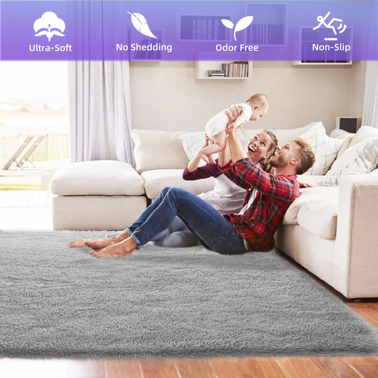 Nefoso Shag Light Gray Area Rug, 8' x 10' Soft Fluffy Area Rugs for Living Room Bedroom Kids Room Decor Carpet, Light Gray