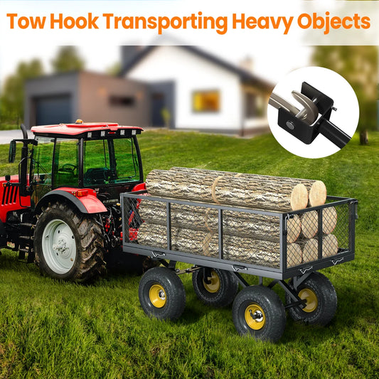 VECUKTY Heavy Duty Steel Dump Garden Cart with Liner, 600lbs 3 Cu ft 10" Wheel, Black