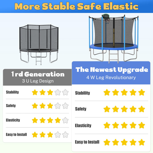 SEGMART 10ft Trampoline for Kids with Basketball Hoop and Enclosure Net/Ladder,Blue