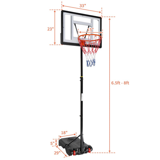 Ktaxon 33 In. Portable Basketball Hoop Stand, 6.5-8 ft Adjustable Basketball Goal System, with PVC Backboard Indoor/Outdoor