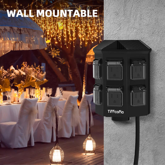 Outdoor Remote Control Power Strip, 25FT Extension Cord Waterproof, Independent Control Outlets, 6 Grounded Outlets for Outdoor Decorations, 14 AWG, 15A/1875W, ETL Listed (25 FT)