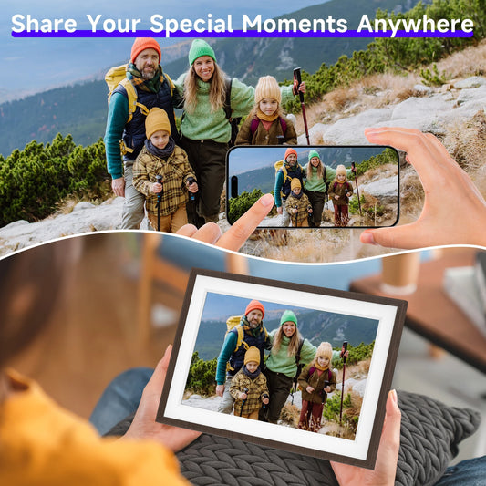 GIROOL Digital Picture Frame WiFi, Electronic Photo Frame with 10.1” IPS Smart Touch Screen, Built-in 32GB Memory, Share Anywhere via Uhale App, Perfect Gift! Woodgrain White