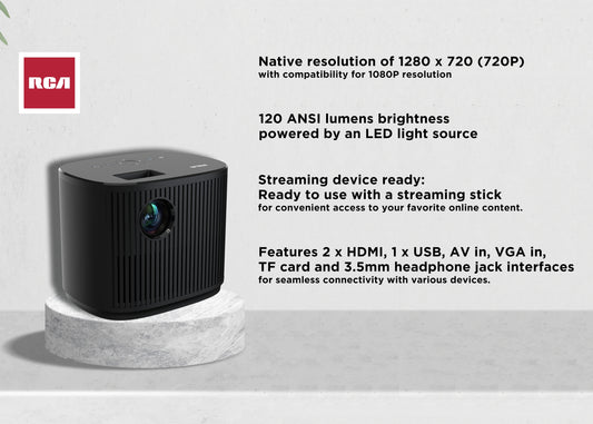 RCA, 720P Home Theater Projector, 120 ANSI, RPJ181, Black