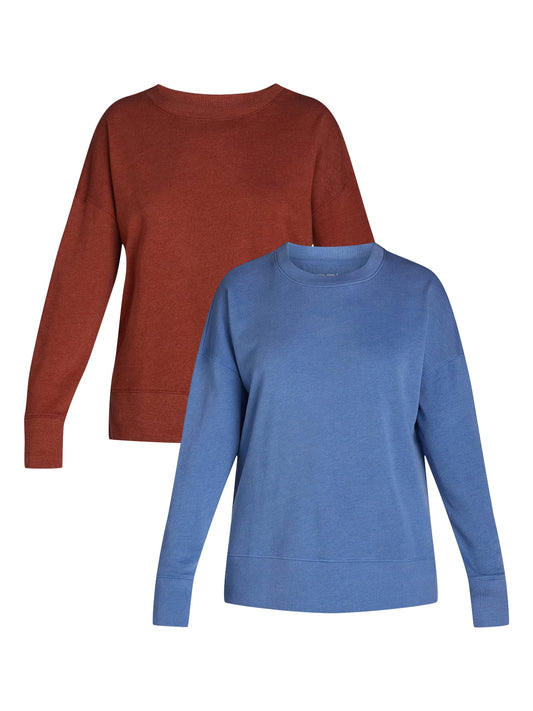 Time and Tru Women's Crewneck Sweatshirt with High-Low Hem, 2-Pack, Sizes XS-XXXL