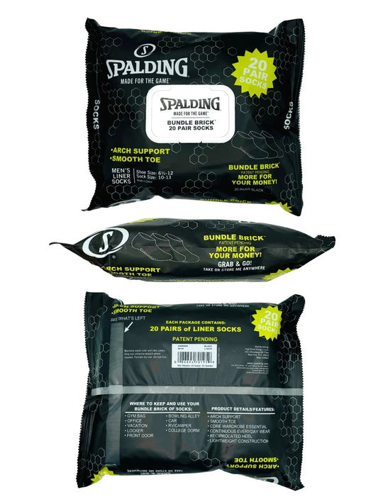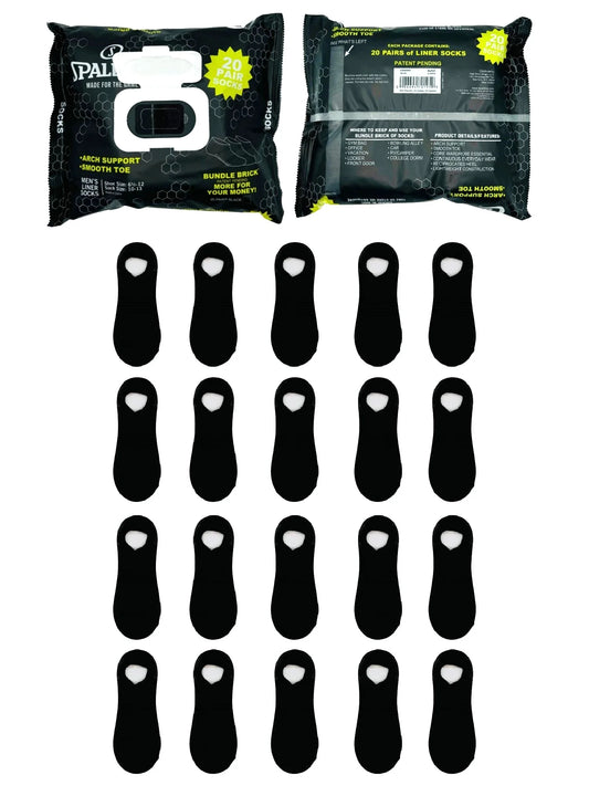 Spalding Men's Black Liner Socks, 20-Pack, Sizes 6.5-12
