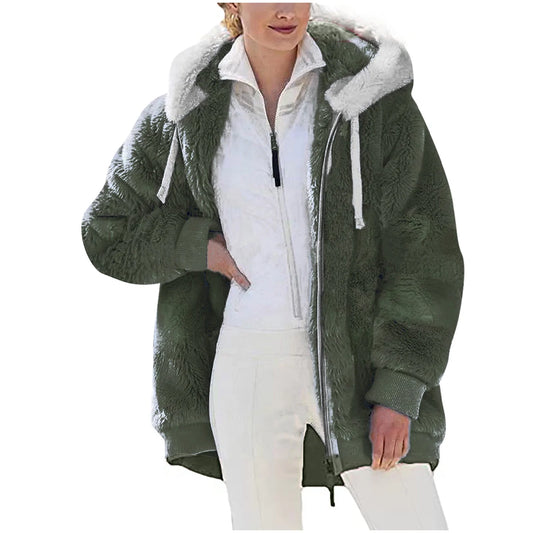 50% Off Clear!Winter Long Coats for Women, Women Plus Size Winter Warm Loose Plush Zip Hooded Jacket Coat Gifts Christmas Gift