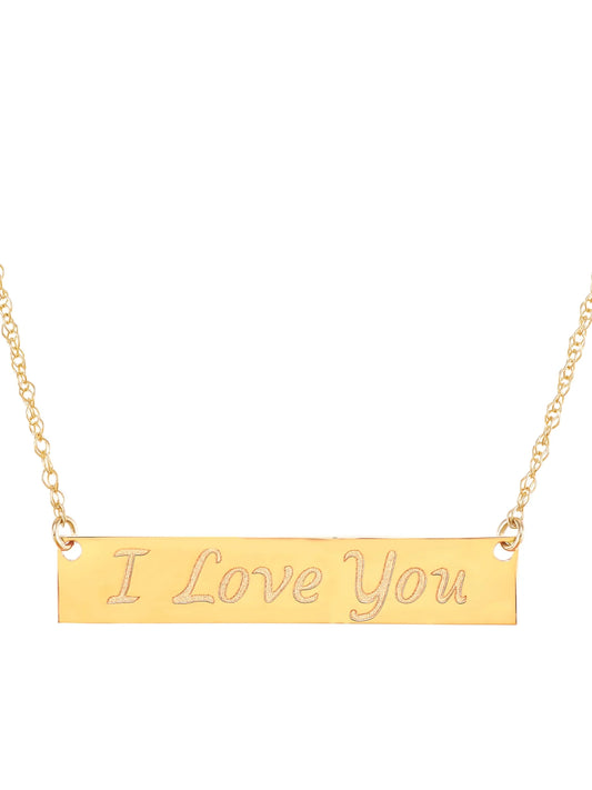 Brilliance Fine Jewelry 10K Yellow Gold Bar Plaque with I Love You Necklace, 18"