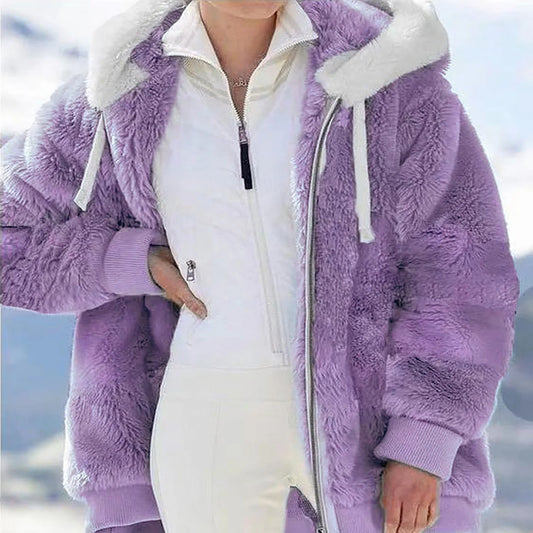 50% Off Clear!Fashion Oversize Winter Coats for Women, Women Plus Size Winter Warm Loose Plush Zip Hooded Jacket Coat Deals Gift for Women