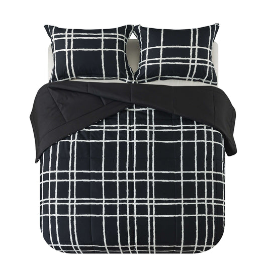 Mainstays 7 Piece Reversible Bed in a Bag Comforter Set with Sheets, Black Checker, Full