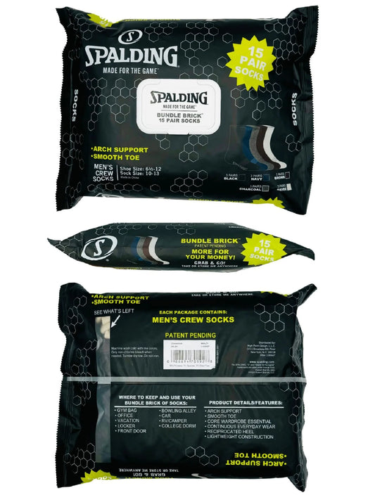 Spalding Men's Neutral Casual Crew Socks, 15-Pack, Sizes 6.5-12