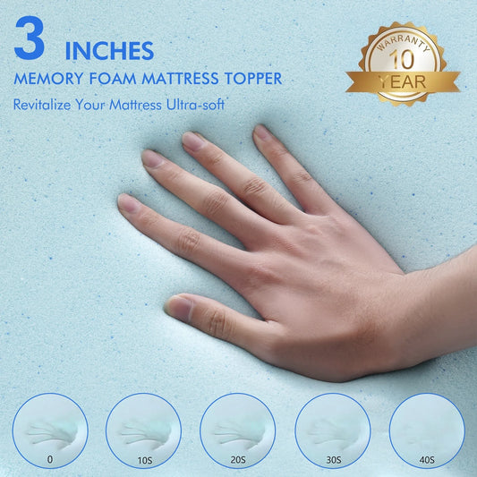 Balichun 3 Inch Gel Memory Foam Mattress Topper for Pressure Relief, Premium Soft Cooling Sleep, Non-Slip Design with Removable & Washable Cover, CertiPUR-US Certified - Twin