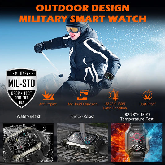 Military Smart Watches for Men, 1.81'' HD Outdoor Sports Rugged Smartwatch for Android and iPhone Compatible, Black