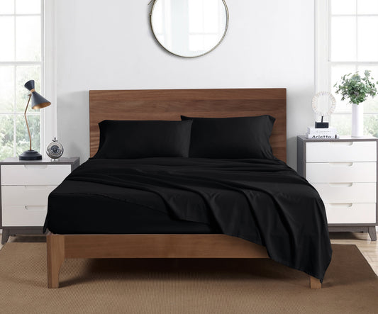 Mainstays Super Soft Recycled Brushed Microfiber Bed Sheet Set, Full, Rich Black, 4 Piece