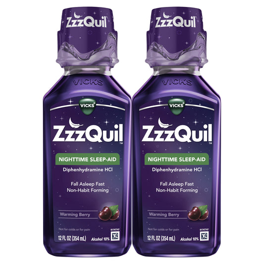 Vicks ZzzQuil Nighttime Sleep Aid Liquid, Diphenhydramine HCI 50mg, Warming Berry, 24 Fl oz