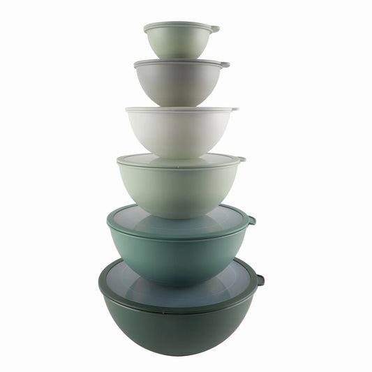 Cook with Color 12-Piece Mixing Bowl Set with Non-Slip Silicone Base and Transparent Lids, Sage Green