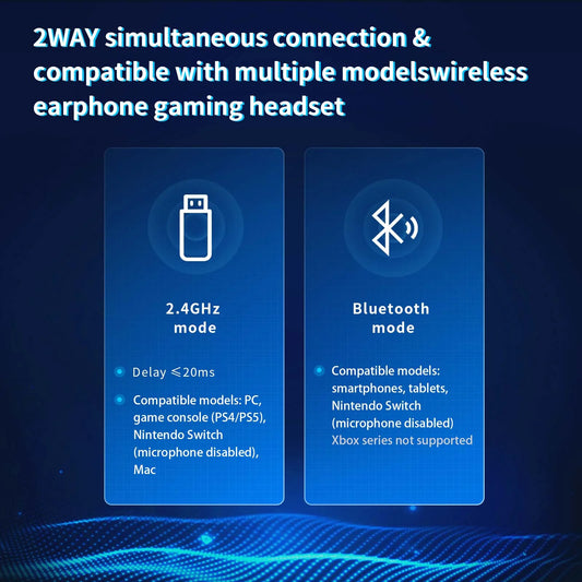 Gaming Headset, Wireless Gaming Headset Lossless 2.4GHz for PC PS4 PS5, Bluetooth Gaming Headphones with Detachable Noise Canceling Mic, 7.1 Surround Sound, 30H Long Lasting Battery