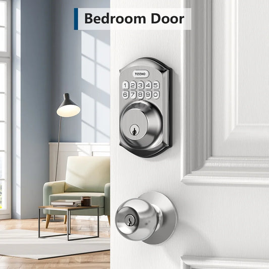 TEEHO Keyless Entry Door Lock Keypad Electronic Smart Deadbolt for Front Door, Digital Lock Anti-Peeking Password, Easy Installation-Satin Nickel