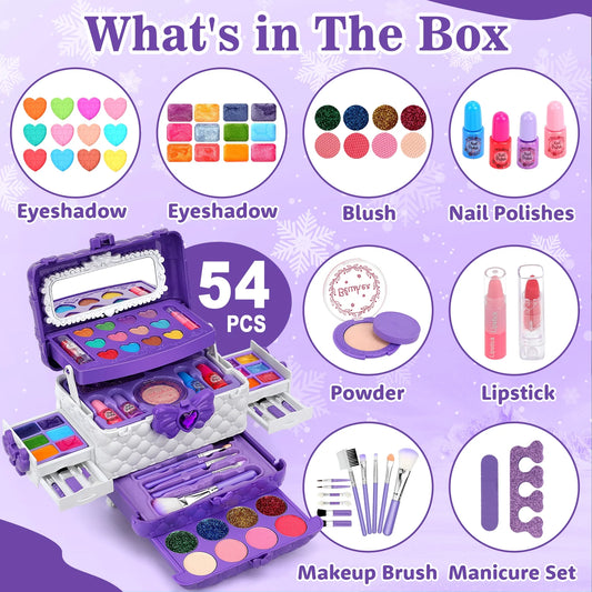 Sendida Kids Makeup Kit for Girl Gifts, 54PCS in 1 Makeup Toys Washable Little Girls Princess Make Up Toys for 4 5 6 7 8 9 Year Old Girl Birthday Gift (Purple)