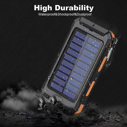 20000mAh Solar Charger for Cell Phone iPhone, Portable Solar Power Bank with Dual 5V USB Ports, 2 LED Light Flashlight, Compass Battery Pack for Outdoor Camping Hiking(Orange)