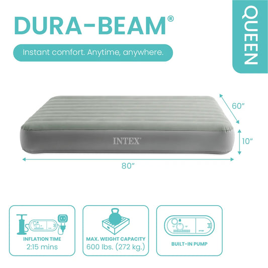 Intex 10" Queen Standard Dura-Beam Airbed Mattress with Built in Pump