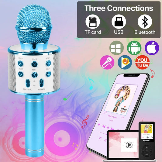 SUPTREE Wireless Bluetooth Karaoke Microphone for Kids Adult Singing, Portable Handheld Karaoke Machine Speaker with Record Function (Blue)
