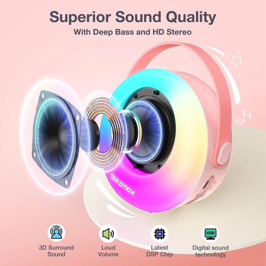 BLITZ Karaoke Machine with 2 Wireless Mic, Mini Portable Bluetooth Karaoke Singing Speaker for Kids Adults, Birthday Gifts, Christmas Gifts