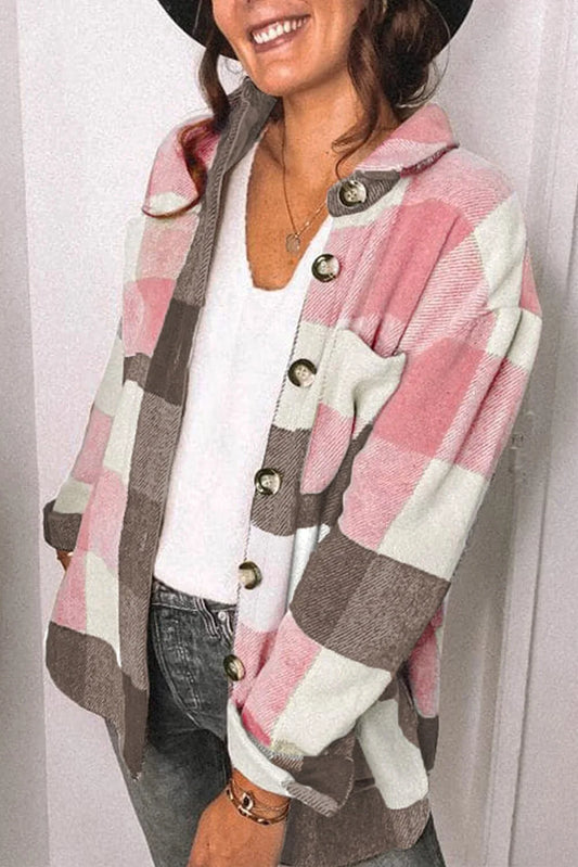 Fantaslook Womens Plaid Shirts Flannel Shacket Jacket Long Sleeve Button Down Boyfriend Shirt Coats